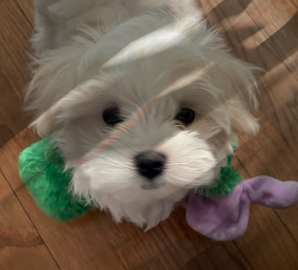 When she’s not charming everyone she meets, Molly loves playing with her friends Oreo and Johnny, and you’ll rarely find her without her favorite toy, Lamb Chop, close by. Fetching toys is her specialty, especially when treats are involved — mini soft chews are her motivation of choice!